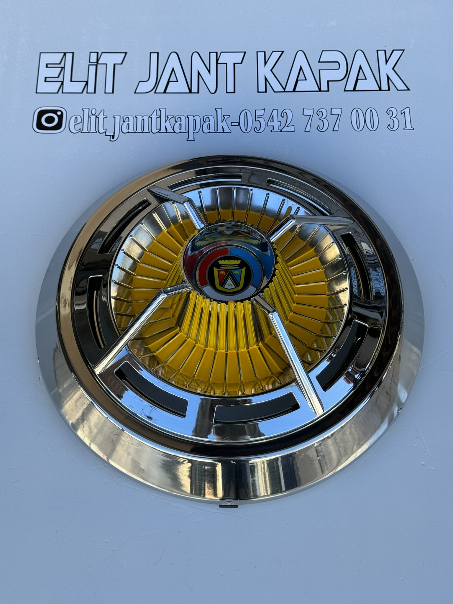 16 INCH DÜZ PASLANMAZ ÇEMBERLİ SARI ÖRÜMCEK JANT KAPAĞI