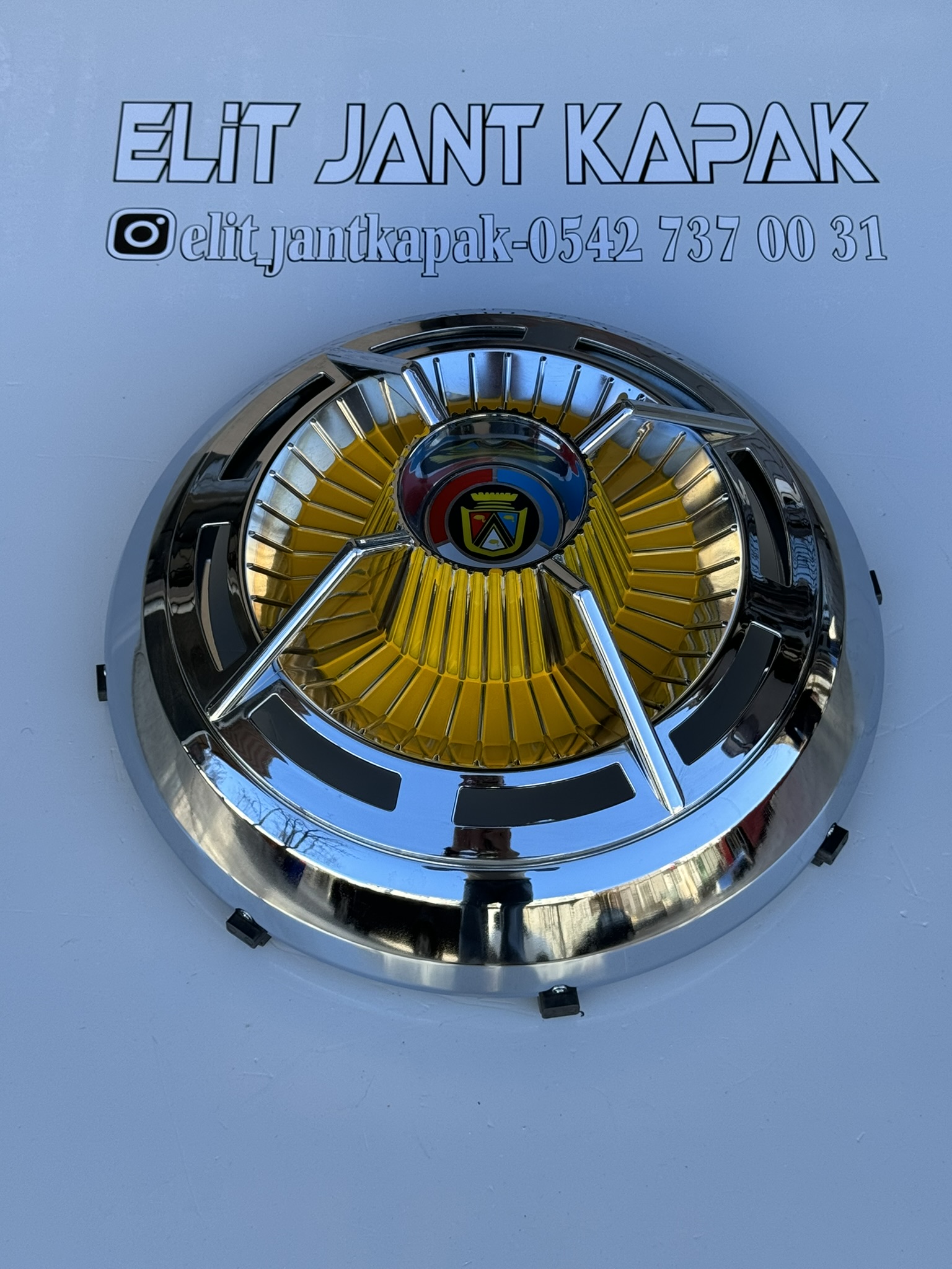 16 INCH EKSTRA BOMBELİ ÇEMBERLİ SARI ÖRÜMCEK JANT KAPAĞI